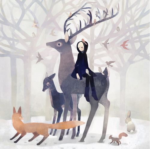 鹿,手绘,水彩,插画,唯美,壁纸,意境,创意,艺术