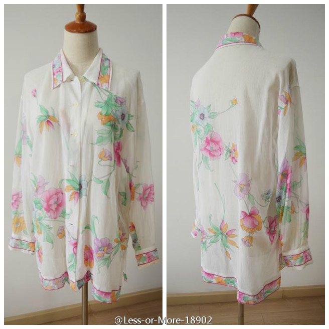 花与爱丽丝 复古vintage日本古着薄纱水墨印花高品质衬衣防晒衫