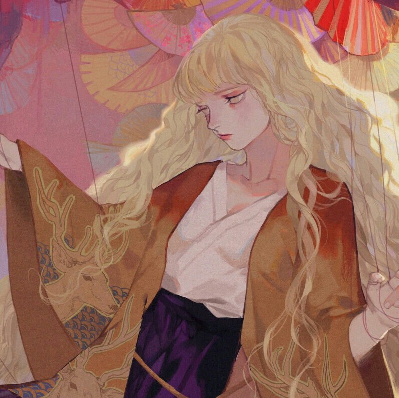 长发 卷发 女孩 卡通