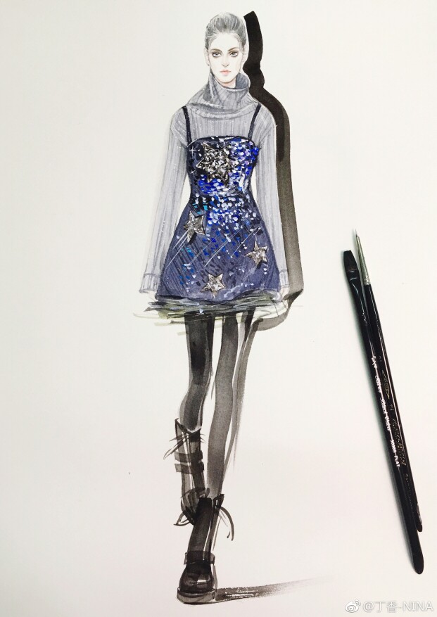 时装绘画 服装设计 插画师微博@丁香_NINA