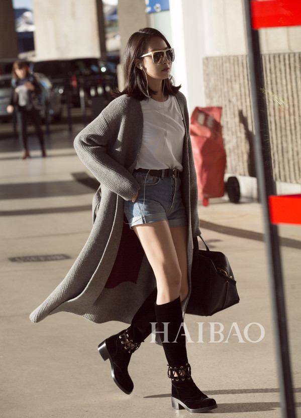 Girl's Day组合成员李惠利2017年7月31日韩国仁川机场街拍:身着System格纹西服搭配同品牌白色紧身牛仔裤准备前往罗马
