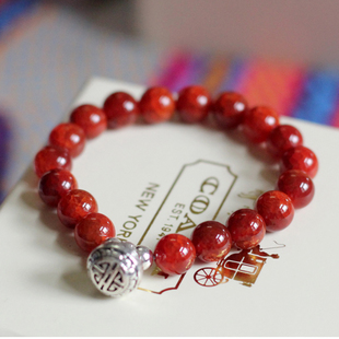 红珊瑚纯银配饰手链