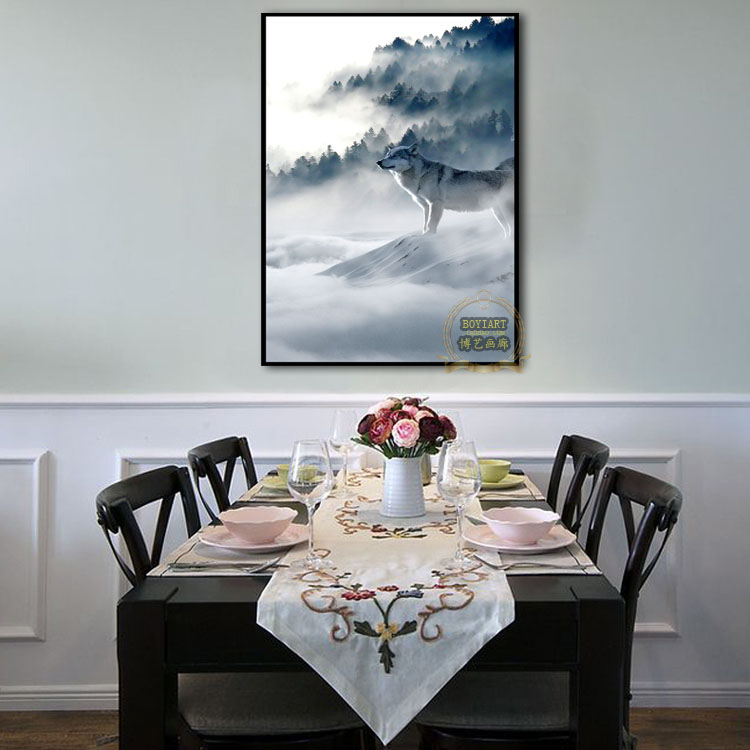 定制 中式狼图腾玄关挂画动物狼装饰画有框卧室房间办公室公司创意壁画