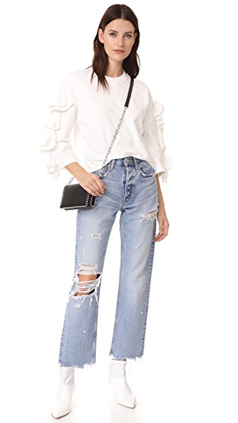 在 J Brand 看来,“Wynne” 系列的裤型设计前卫无比。其中这款被誉为 “true denim” 的版本采用高腰直筒裤形,九分裤脚下微露脚踝,恰到好处又不至于太过刻意。正因重视细微处的调整,无论你如何穿搭,这件裤装总能为整体造型增添清新而现代的气息。