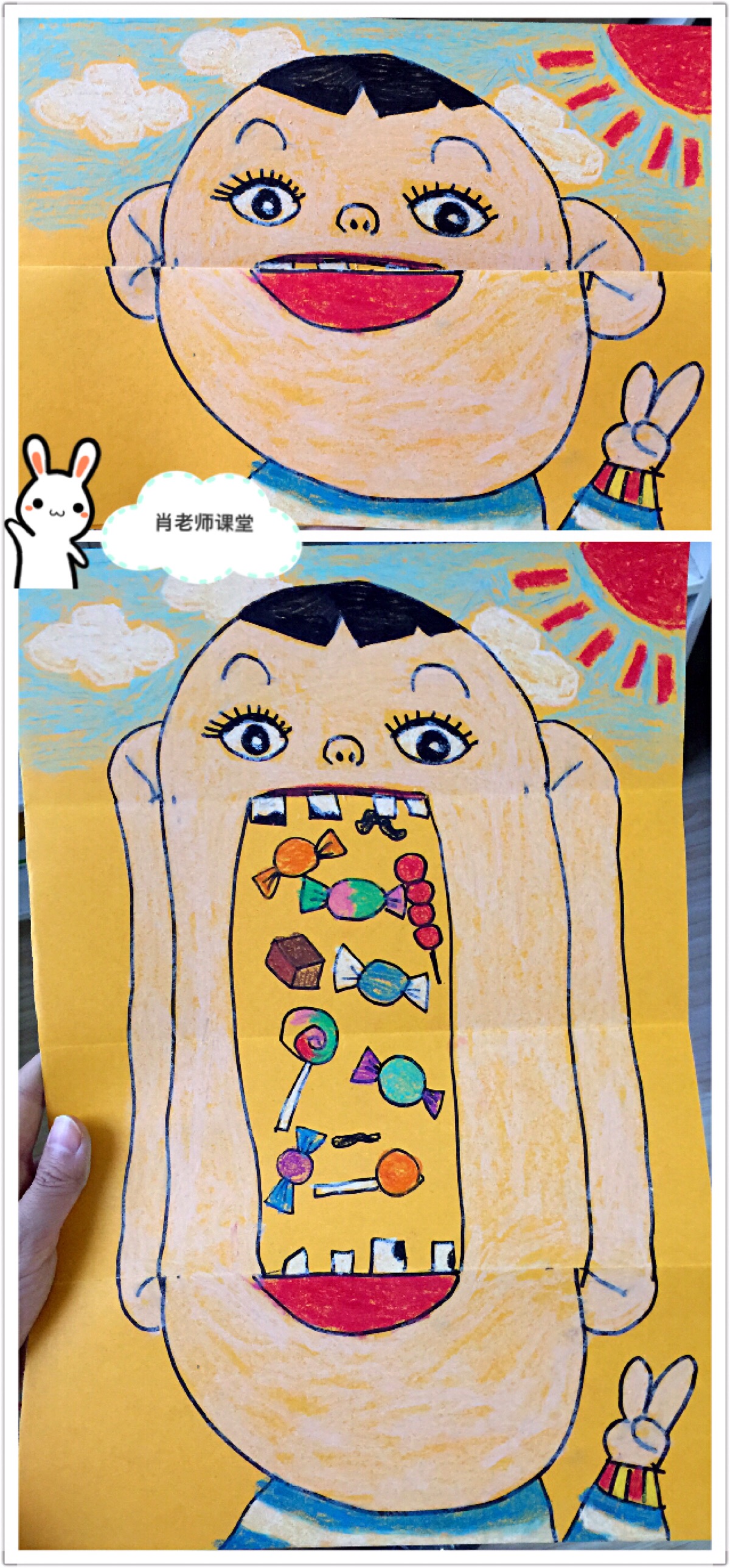 儿童画。开心小兔