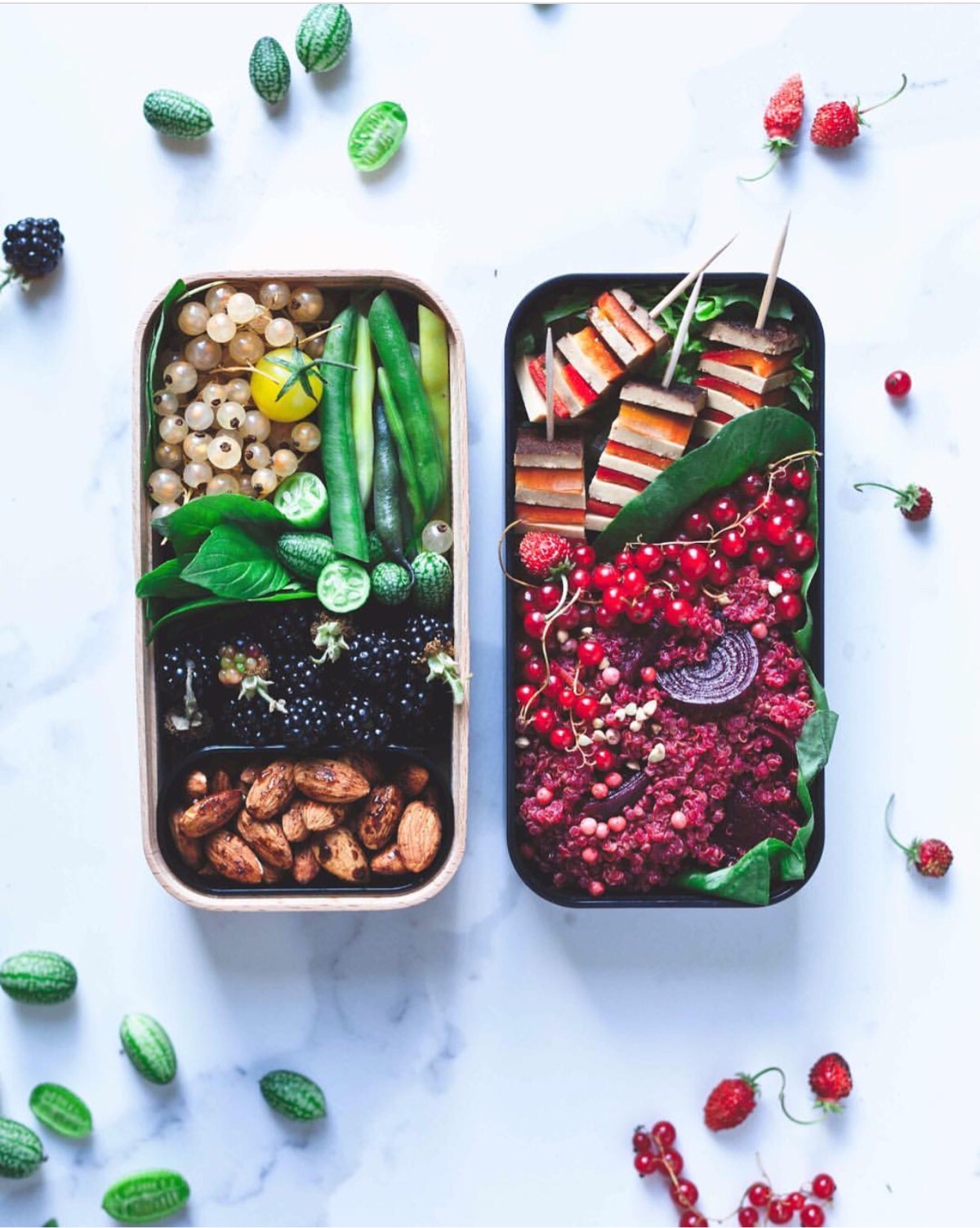 花花绿绿的素食便当,水果,蔬菜,粗粮