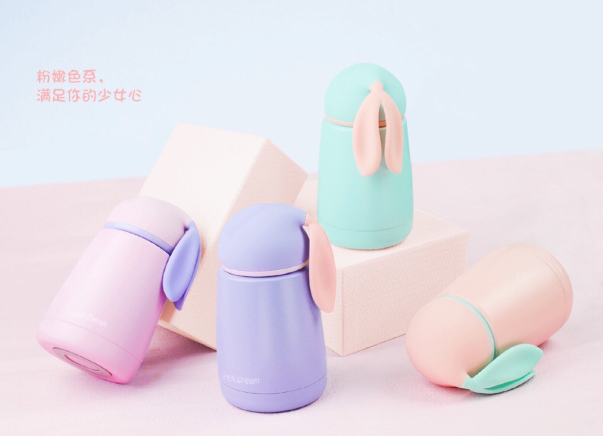 糖果色韩版保温杯 兔子大肚杯