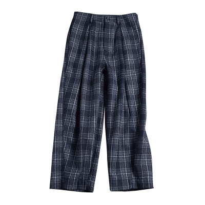步履不停格纹呢九分阔腿裤 冬季日系百搭直筒休闲裤 43101