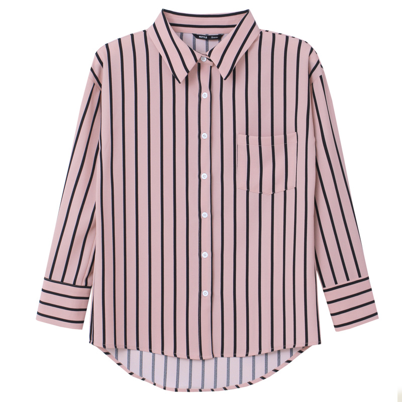 韩都衣舍2018新款女装春装韩版宽松马卡龙清新条纹衬衫