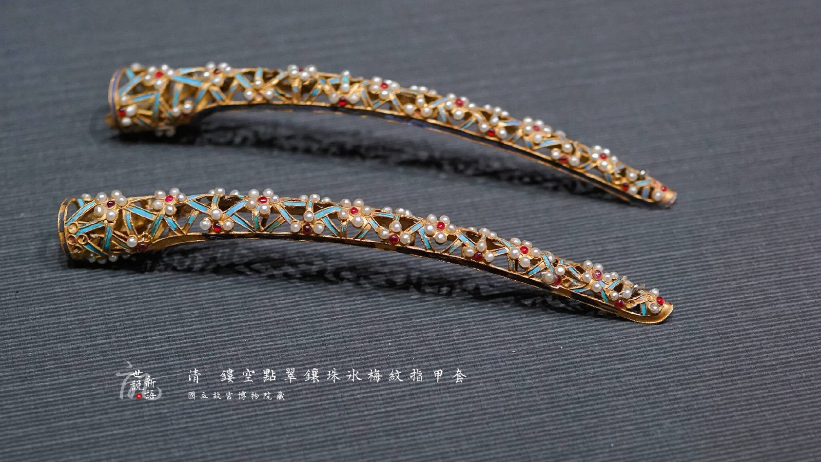 清 镂空点翠镶珠冰梅纹指甲套 国立故宫博物院藏
