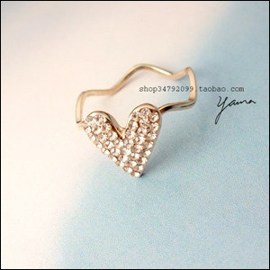 镀18K玫瑰金 。满钻大爱心 戒指