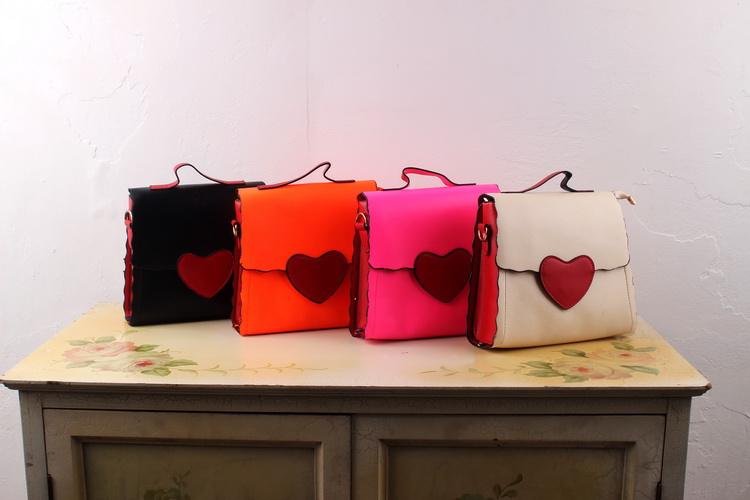 {野草莓}独家 出口品 复古 撞色 爱心 荧光色 单肩包 小挎包 没有好看的颜色了