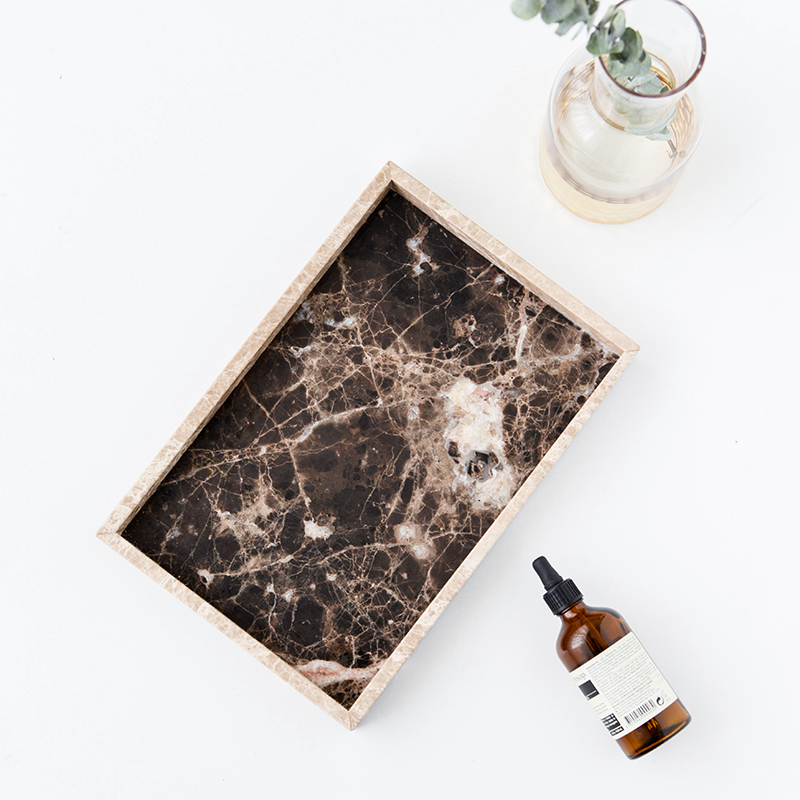 北欧风咖色天然大理石托盘长方形茶盘收纳盘欧式创意摆件装饰盘