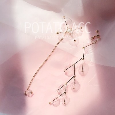 夏天超仙透明玻璃球不对称耳环女长款夏季款2018新款耳坠耳夹耳钉