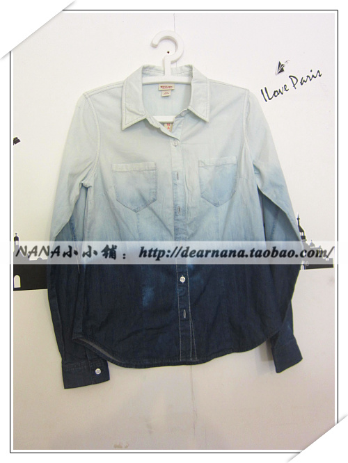 包邮欧美原单mossimo英伦丹宁印染渐变色长袖衬衫衬衣牛仔衫女秋