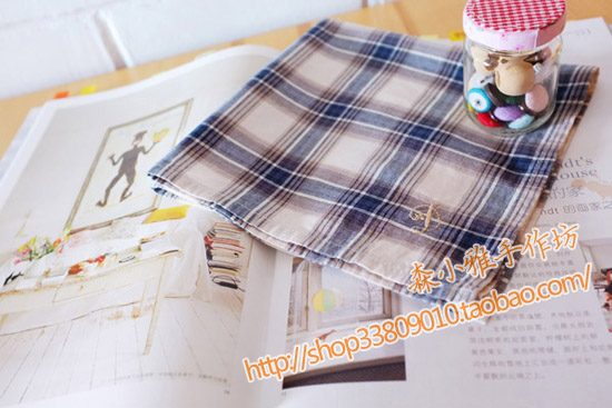 【森小雅♥英文字母】 原创手工 定制刺绣手帕 纯棉格子手帕手绢